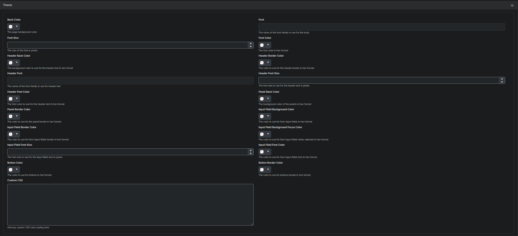 - Customize panel and input field colors