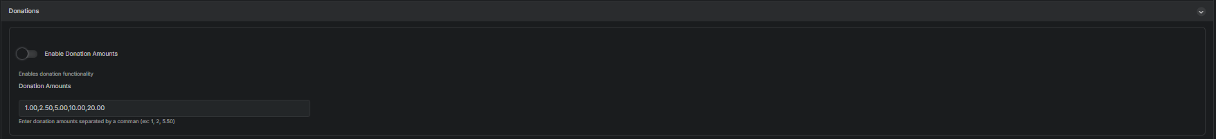 - Toggle Enable Donation Amounts