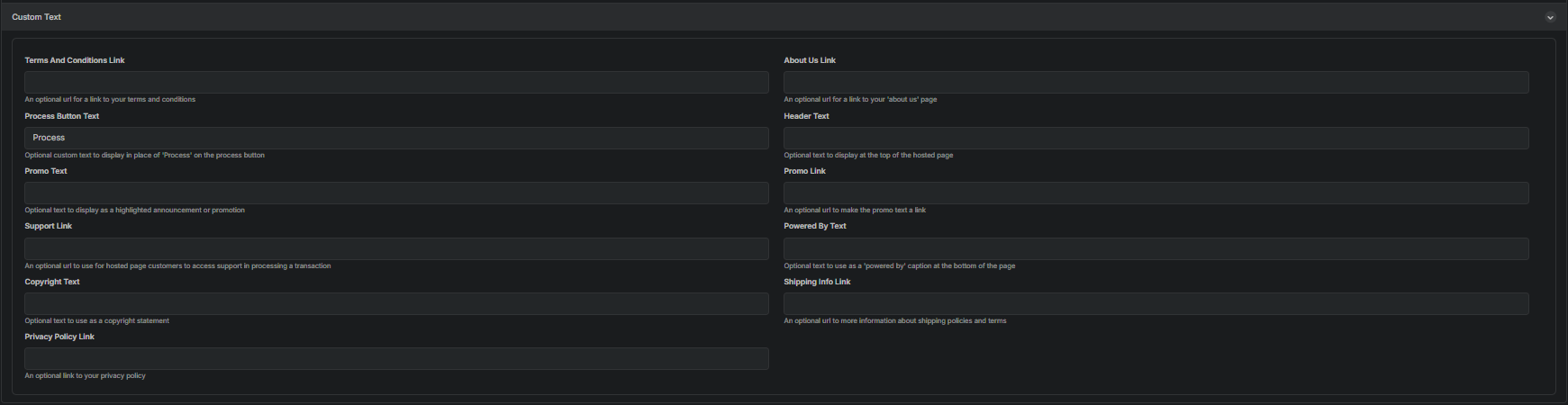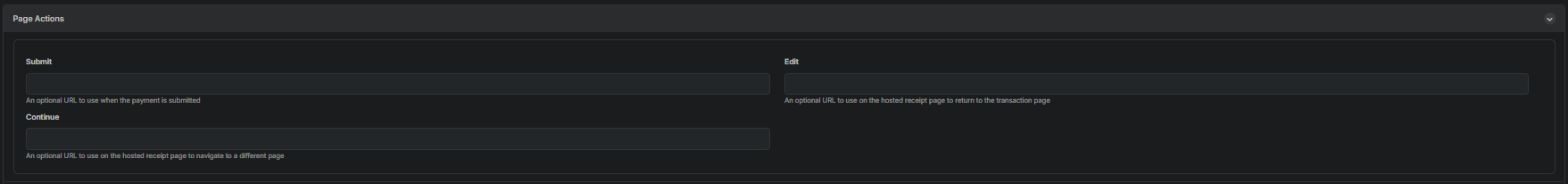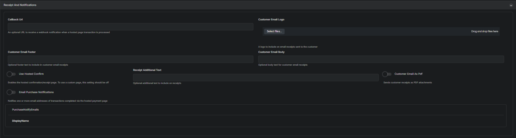These fields may be left blank if you want to use the default hosted receipt page.