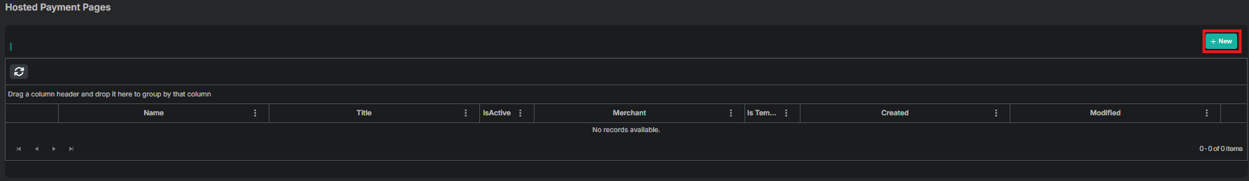 Click the +New Hosted Payment Page button to begin creating a new page.